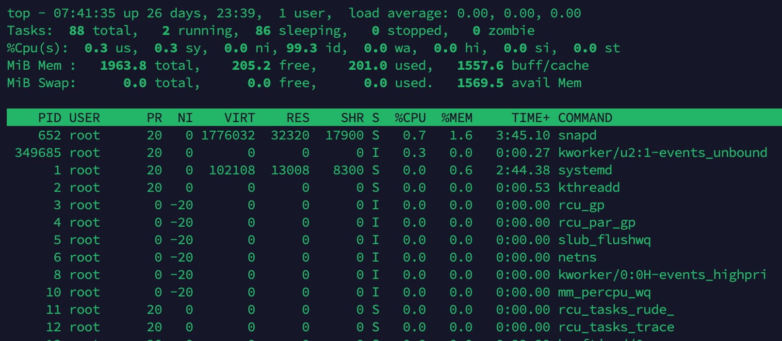 Вы увидите экран, который обновляется каждые несколько секунд. Для выхода нажмите клавишу q.