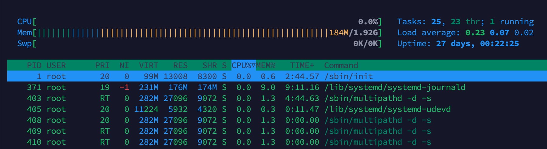 htop не всегда установлен по умолчанию, поэтому давайте его установим.