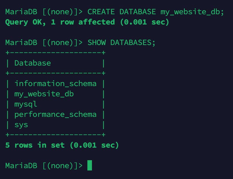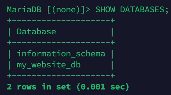 Результат: Вы увидите только information_schema и вашу my_website_db. Вы не видите системные базы (mysqlperformance_schema) и базы других пользователей. Это доказывает, что изоляция работает!