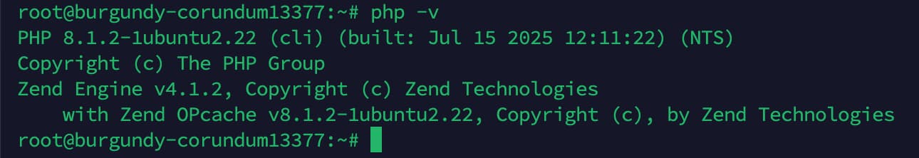 Теперь, когда у нас есть php-cli, мы можем безопасно проверить версию.