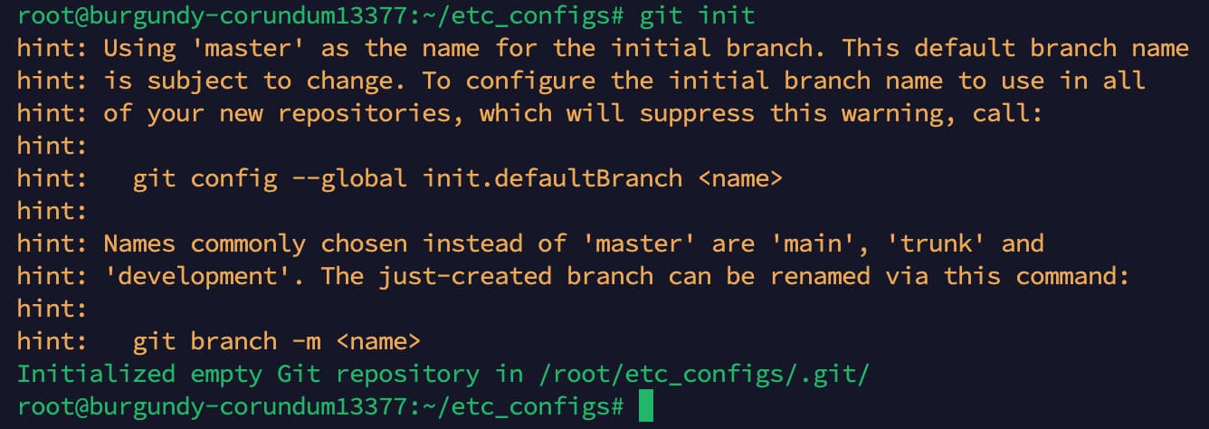 Результат: Initialized empty Git repository in /root/etc_configs/.git/