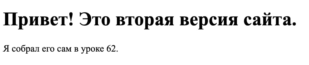 nano index.htmlПоменяйте текст на "Это уже ВТОРАЯ версия сайта!". И сохраните файл.